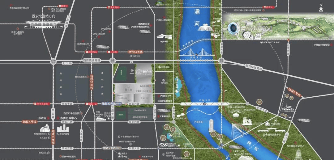 5公里内聚合了华夏文旅、西安奥体核心、长安云、长安泰、长安书院、西安国际会展核心、丝国际文化艺术核心、保利大剧院八大文旅地标。